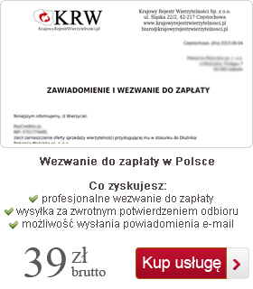 Oferujemy również płatne wezwanie do zapłaty, wysyłane bezpośrednio przez Krajowy Rejestr Wierzytelności do dłużnika drogą korespondencyjną, za potwierdzeniem odbioru.